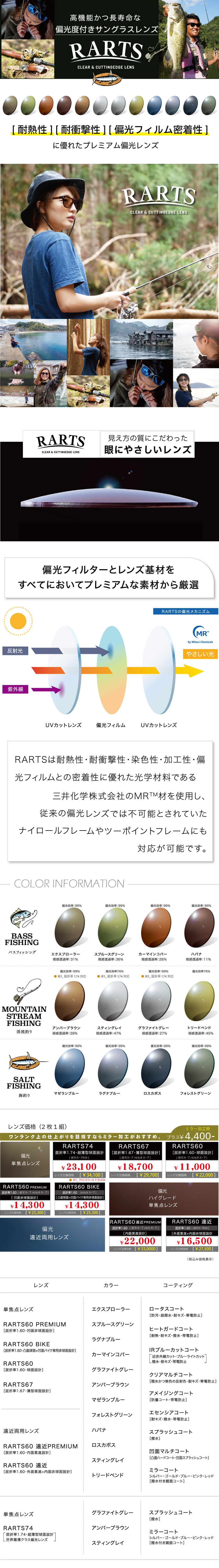 伊藤光学の「RARTS」は、釣り用偏光サングラスとして最高の選択肢です。フィールドに応じたレンズカラーが最初から提案されているため、初心者でも簡単に自分に合ったものを選びます。矢川に最適な「エクスプローラー」は、グレーに少しブラウンを混ぜたカラーで、魚影やストラクチャーが裸眼よりも遙かに釣りに映えます。また、水中のコントラストに優れた「アンバーブラウン」もあり、根回しや魚影を細かく認識できます。 このカラーは汎用性が高く、どの釣り場でも活躍。偏光レンズの導入により、釣果が劇的に向上することは多くのプロも証言しております、ロッドやリールを購入する前に、まずはRARTSを強くおすすめします。 特に、コストパフォーマンスが高く、価格も抑えられているため、釣りの効率と楽しさを大幅に向上させるツールとして非常に優れています。